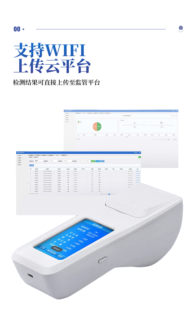 配置监管平台,检测结果可直接无线传至平台,进行水质长短期分析,辅助管理。